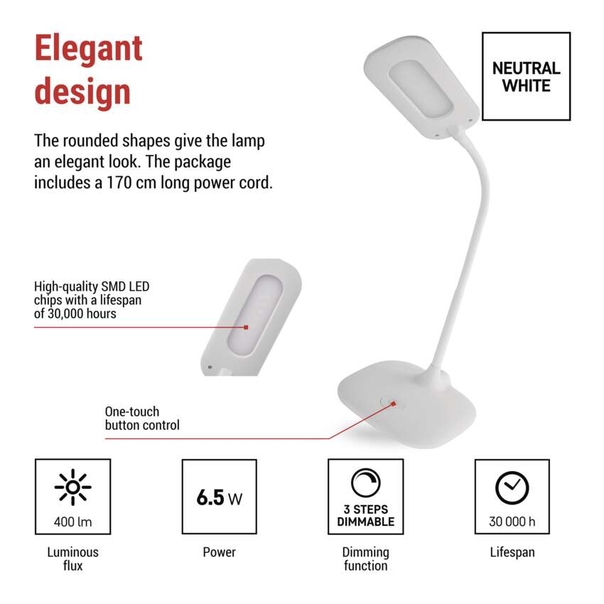 Lampa de birou LED STELLA este o solutie practica si estetica pentru spatii de lucru moderne, oferind un echilibru foarte bun intre performanta luminoasa, eficienta energetica si confort vizual.