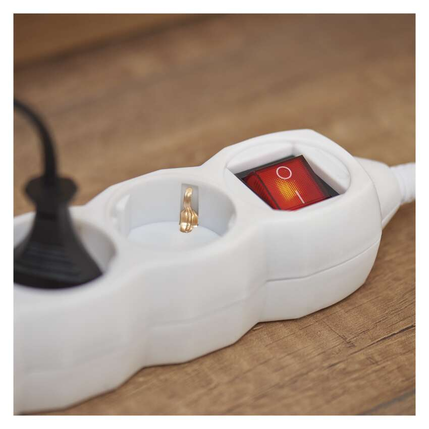 PRELUNGITOR ALB 5 M, 3 PRIZE CU INTRERUPATOR